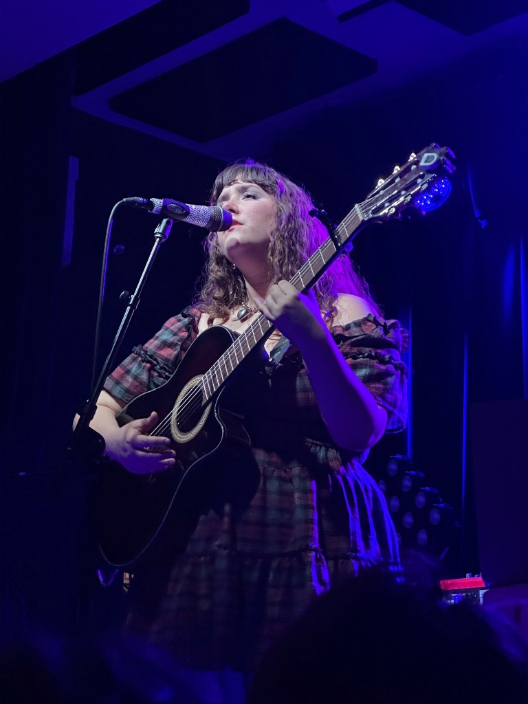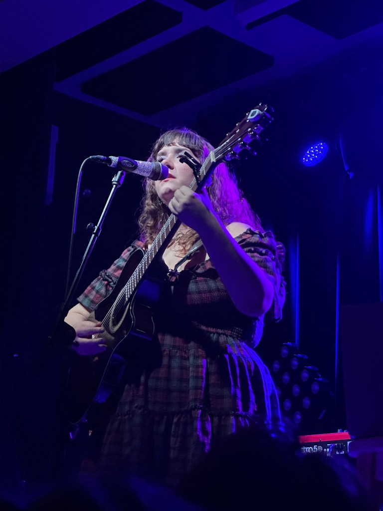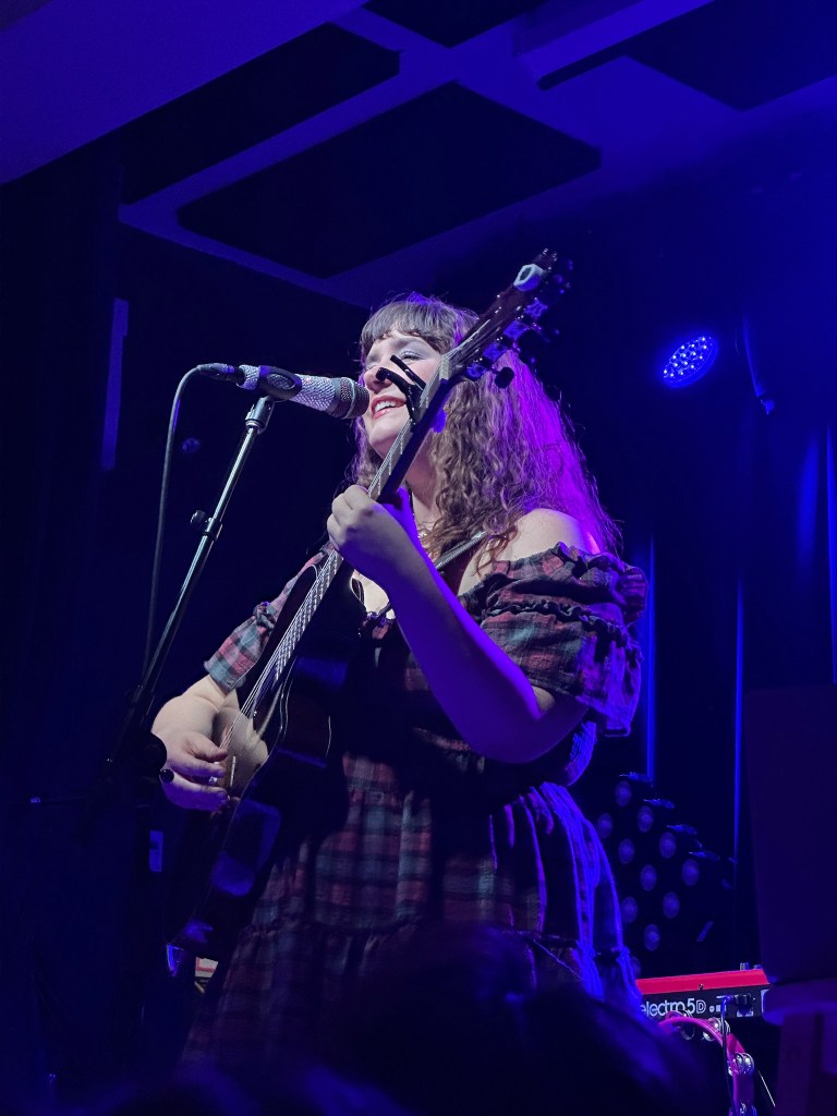 Starting off the night was singer-songwriter JOBIE, a Boston native and someone whose songs have been on my radar for awhile now. Explaining meanings and making jokes between songs, her energy was playful and charming. She performed songs from her debut album, Grendel, along with a few others released. It only being her and a guitar allowed her delightful lyrics to shine, and every song got loud cheers from the crowd. Her set ended with newly released song, “Sulfur Skies,” a highly impactful song about the fate of this world due to climate change. While slightly dark, it got the loudest cheer from the crowd, and I am sure that many people were looking up her music after the set ended.